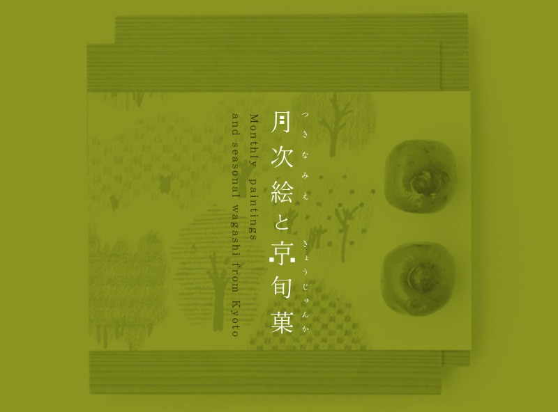 四季折々の風景や年中行事を描いた「月次絵」に、旬の素材を使った月替わりの和菓子「京旬菓」を組み合わせました。