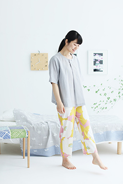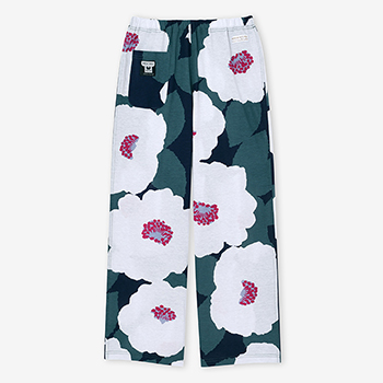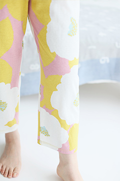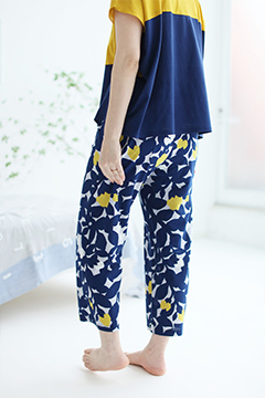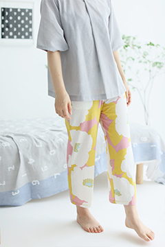 やわらかく肌あたりのよい綿素材を使用した、かわいく華やかな部屋着パンツです。