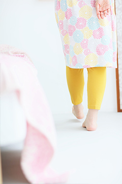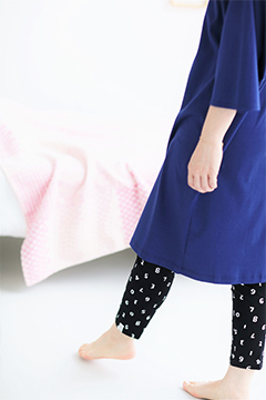 腹巻きをイメージしたレギンス。お腹を包み込むウエスト部分が冷えから守ってくれます。