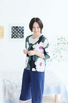 シャリ感が気持ちいい綿素材のくつろぎ着。上下でも単品でもお使いいただけます。