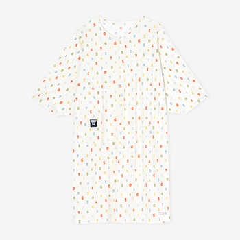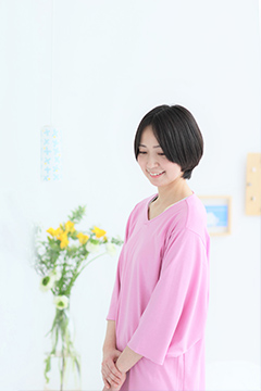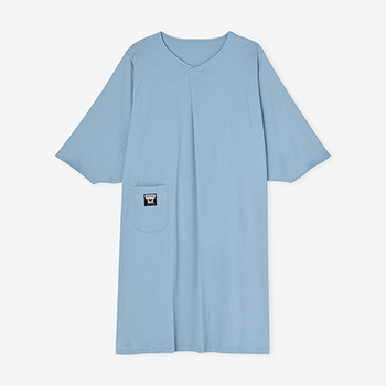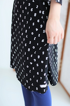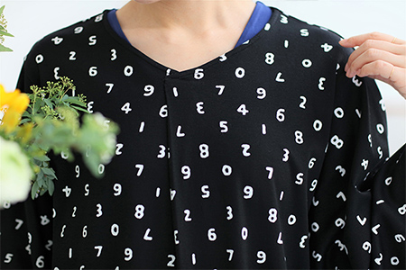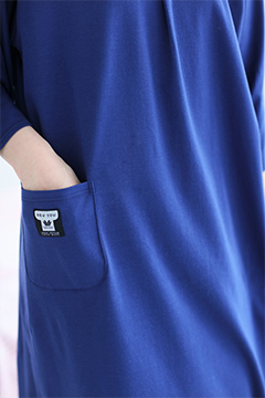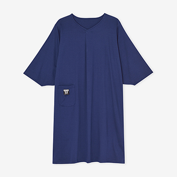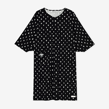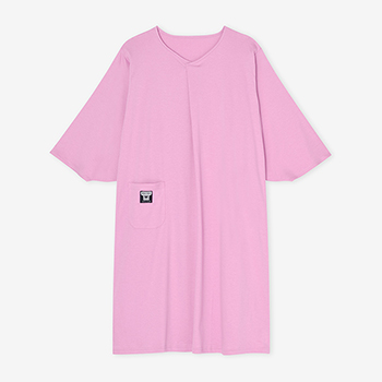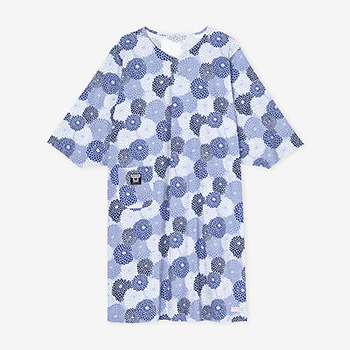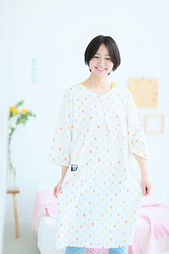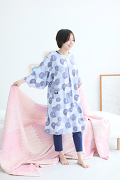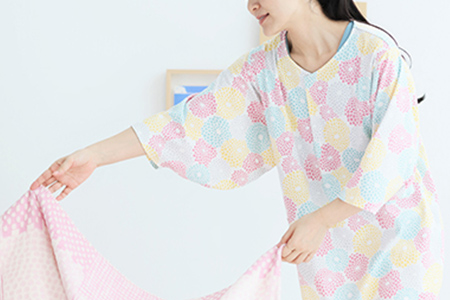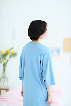 肌ざわりがなめらかな綿天竺のワンピース。薙刀袖と襟ぐり部分の襞が特徴です。