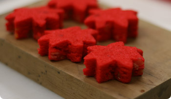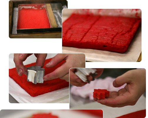 | 蒸し上がった生地を型から外し、紅葉の型に抜いて完成です。 | |