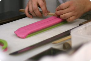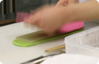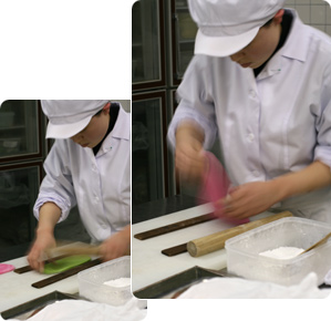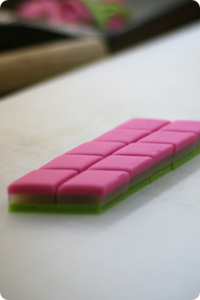 『弥生/ひなまつり』 ひなまつりと言えば、緋毛氈(ひもうせん)の上に おひなさま。でも菱餅も素敵なものだ。 菱形をした、紅、白、緑の餅が 三段重ねになっていてとてもおしゃれ。 その三色の菱形を並べていって桃の節句のお祝いを。