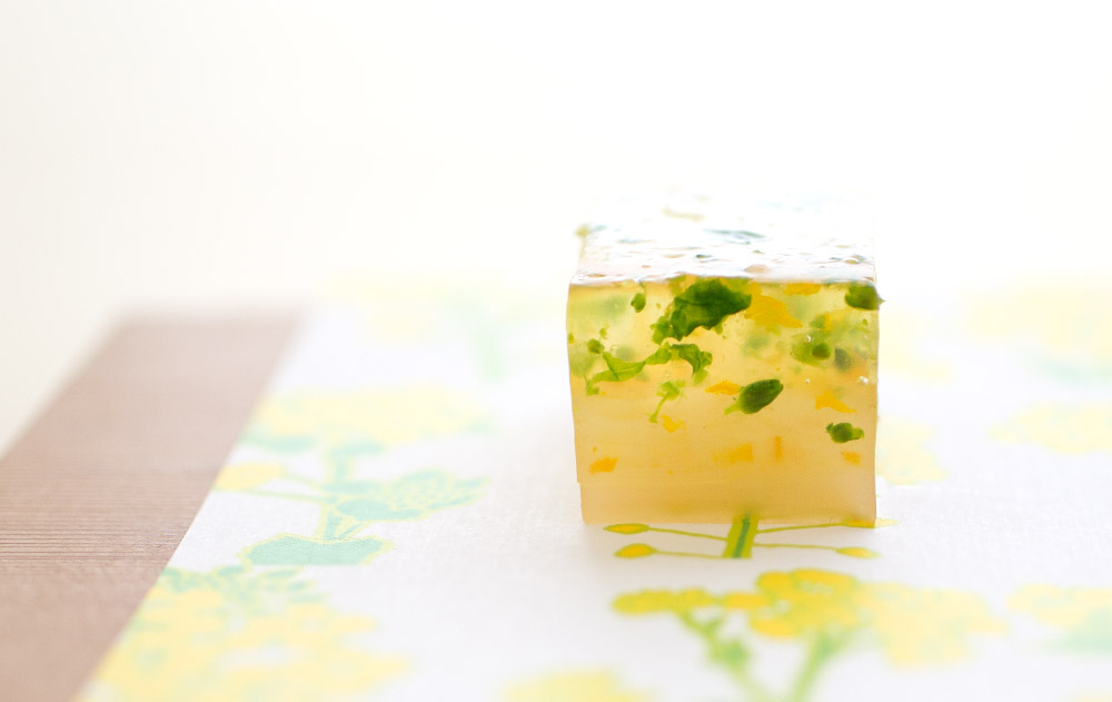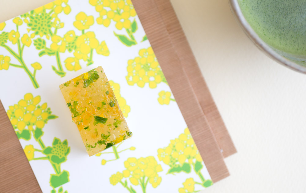 "Wagashi inspired by SOU・SOU's original textile design" in Heisei 27; the theme of this year is vegetables. We are going to release pop textile designs in the motif of vegetables for all four season. Of course, we are using seasonal vegetables in ingredients. We hope you enjoy "vegetable wagashi" made by "SOU・SOU × Kameya Yoshinaga".