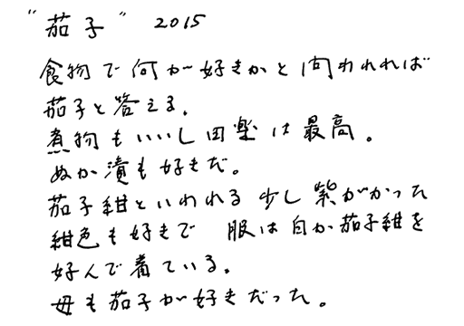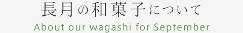 焼き茄子の香ばしさをいかした、秋味の“葛焼き”を作りました。吉野葛に、白餡、白味噌、焼き茄子を加えた生地を型に入れて蒸し、小麦粉をまぶして焼き目をつけます。