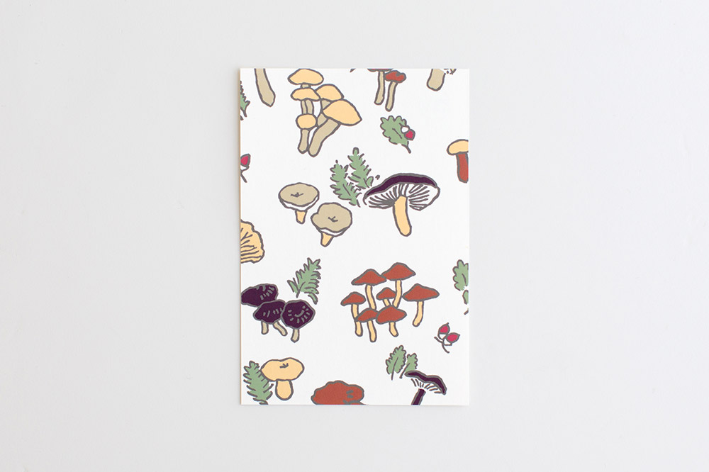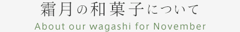 霜月のテキスタイルデザインは、きのこ。図案にも描かれている4種のきのこ(しめじ、なめこ、えりんぎ、しいたけ)を使った、ちょっと変わり種な和菓子を作りました。