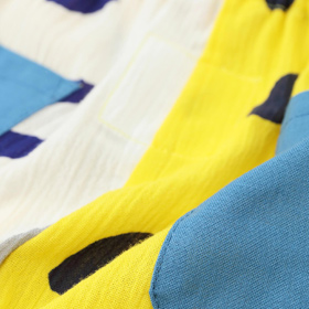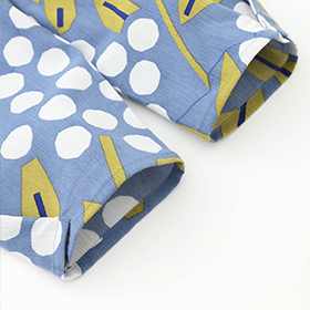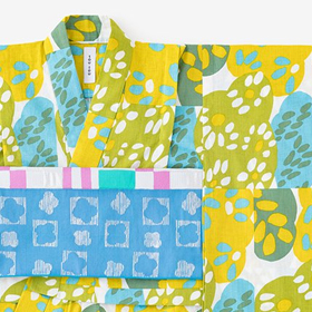 やさしい肌ざわりの『伊勢木綿』や、涼しくさわやかな着心地の『高島縮』で仕立てた子ども服。夏空の下、元気に走り回る子どもたちにぴったりのアイテムが揃いました。京型友禅で施されたポップなテキスタイルデザインが、夏の思い出に彩りを添えてくれます。