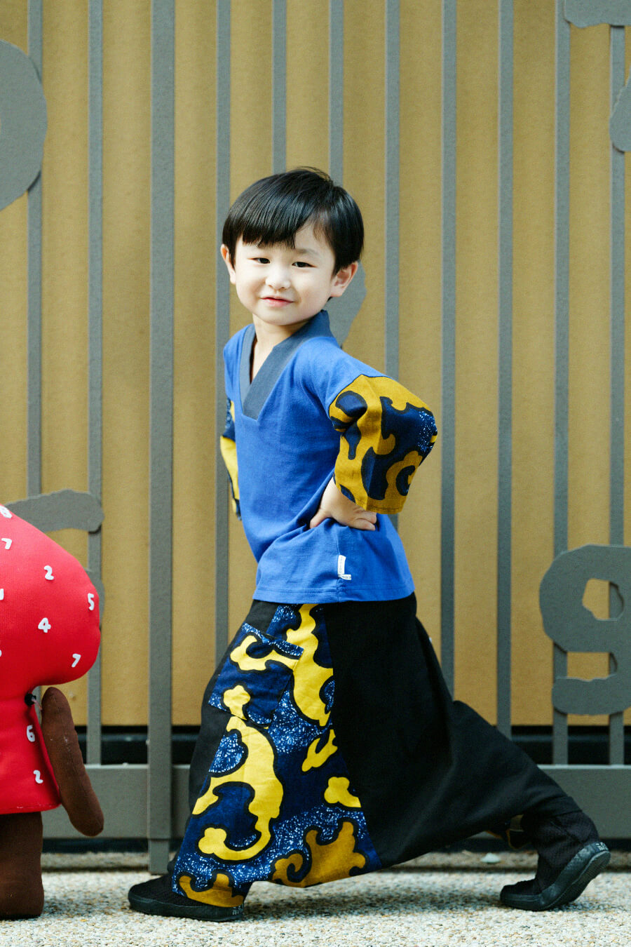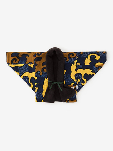 全身「怒涛」のテキスタイルデザインでインパクト大!「もじりそで」はリバーシブルのため、お好みでシックなスタイルにも変更可。あたたかさとかっこよさを兼ね備えたコーディネートです。
