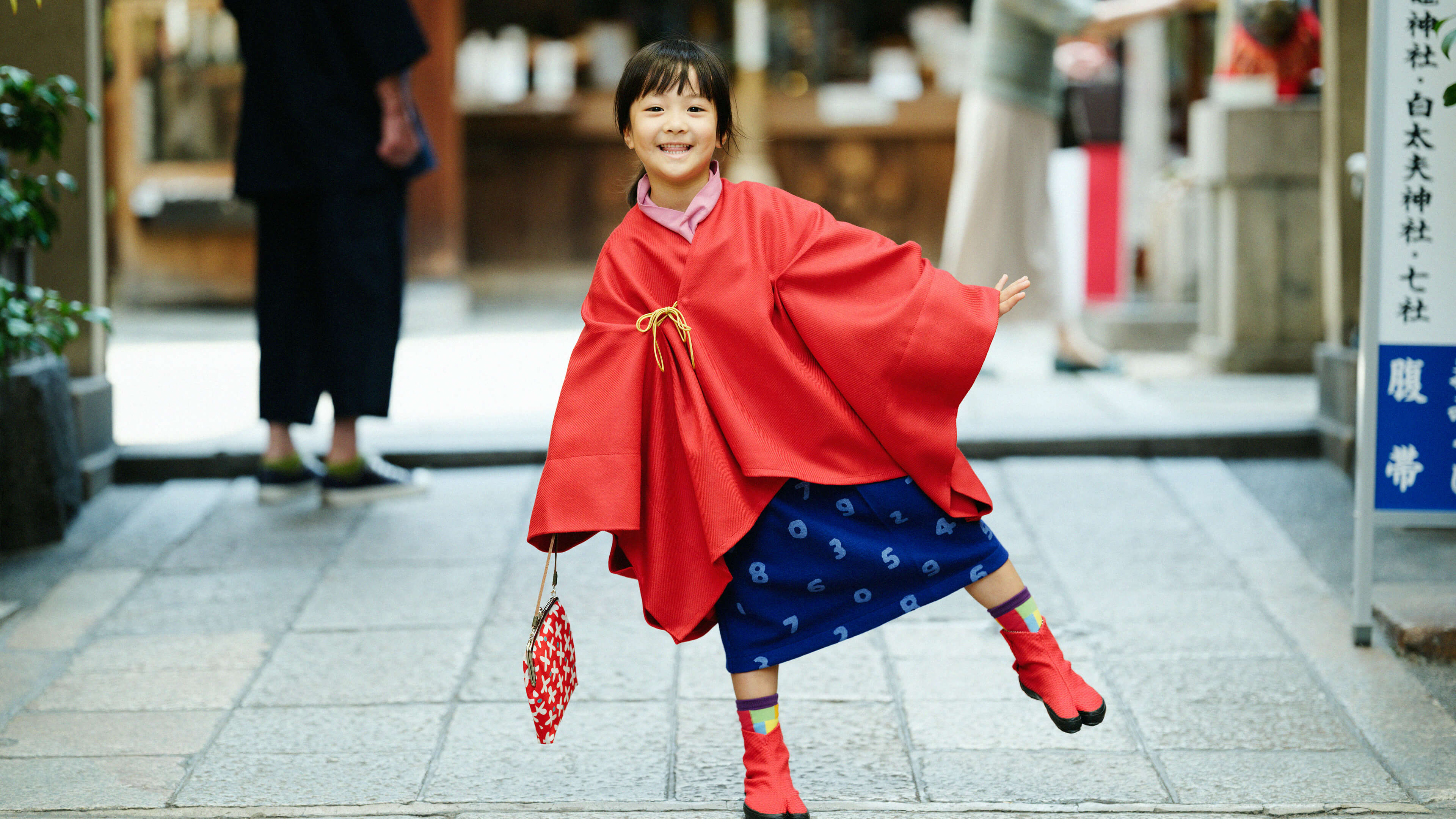 こどもの健やかな成長を願う背守り(せまもり)がついた「きさらぎ」は、ハレの日にぴったりのアイテム。ポップな数字のワンピースの上に羽織って、お姉さんらしいコーディネートの完成。