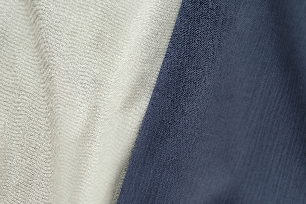 織物産業の街、滋賀県高島市の名品「高島縮(ちぢみ)」。200年以上の伝統をもつこの生地は、表面に凹凸があって肌に密着しにくく、汗を点で吸って面で拡散するため、体感温度はマイナス2℃と言われています。