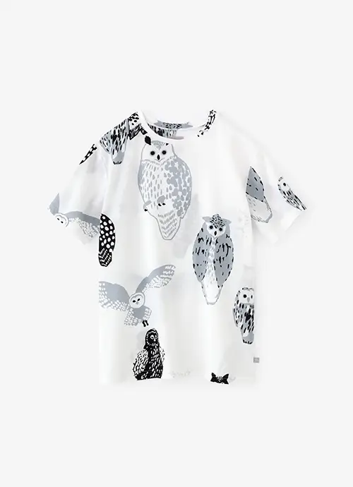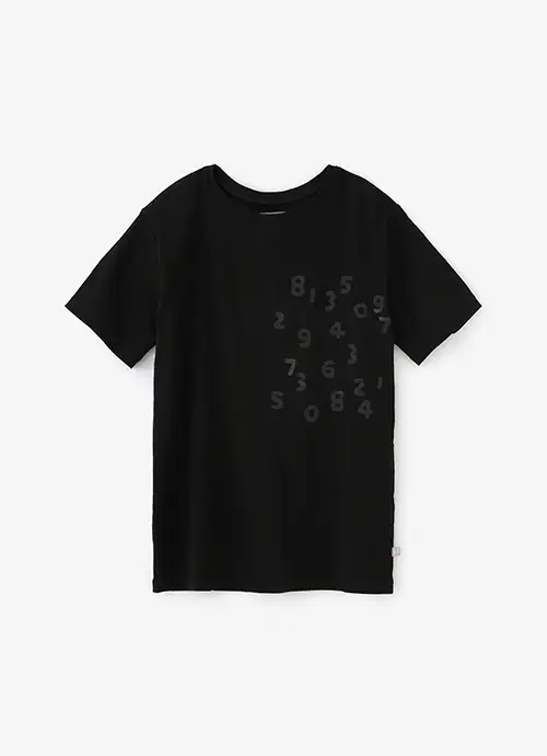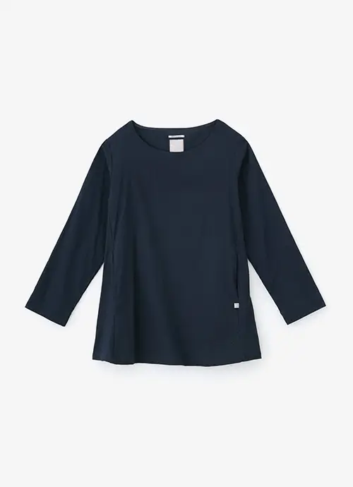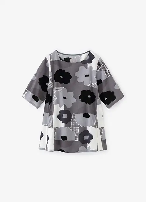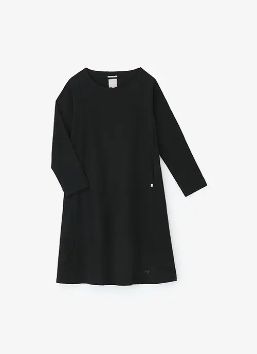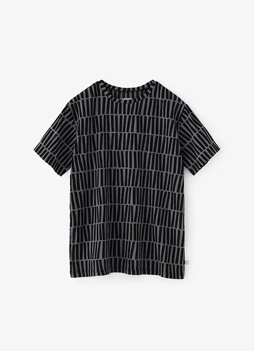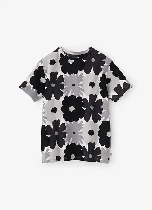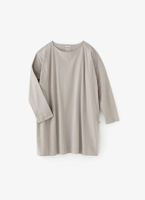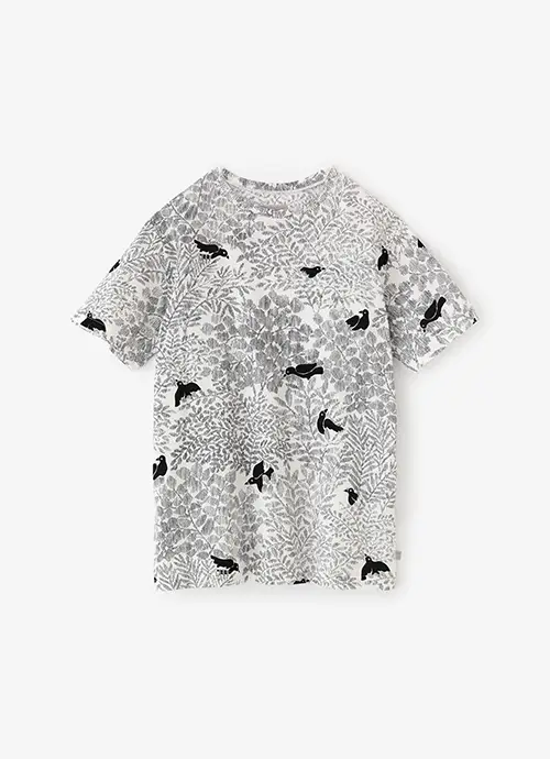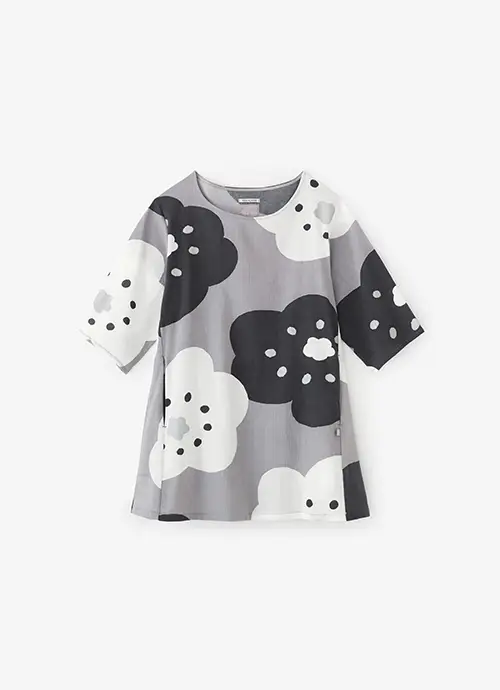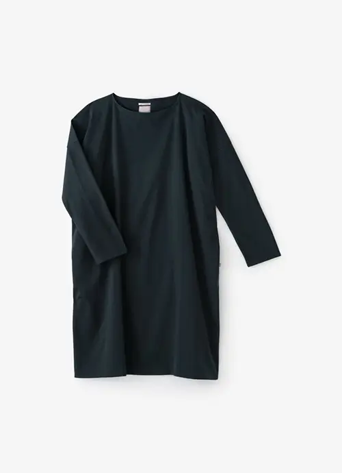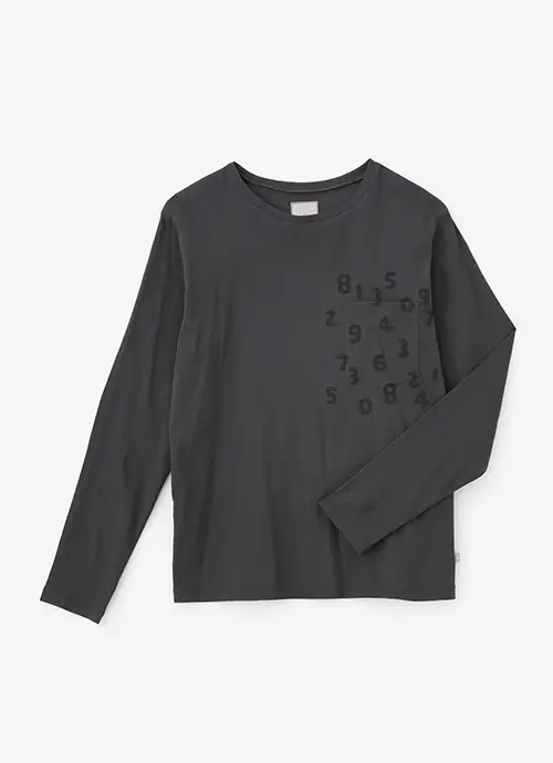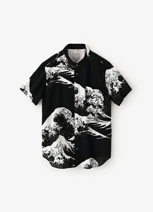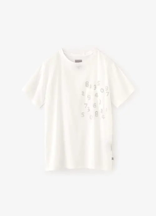 着心地抜群のTシャツはモノトーンでシックに。素材は高温多湿な日本の夏にも最適、「高島縮」。