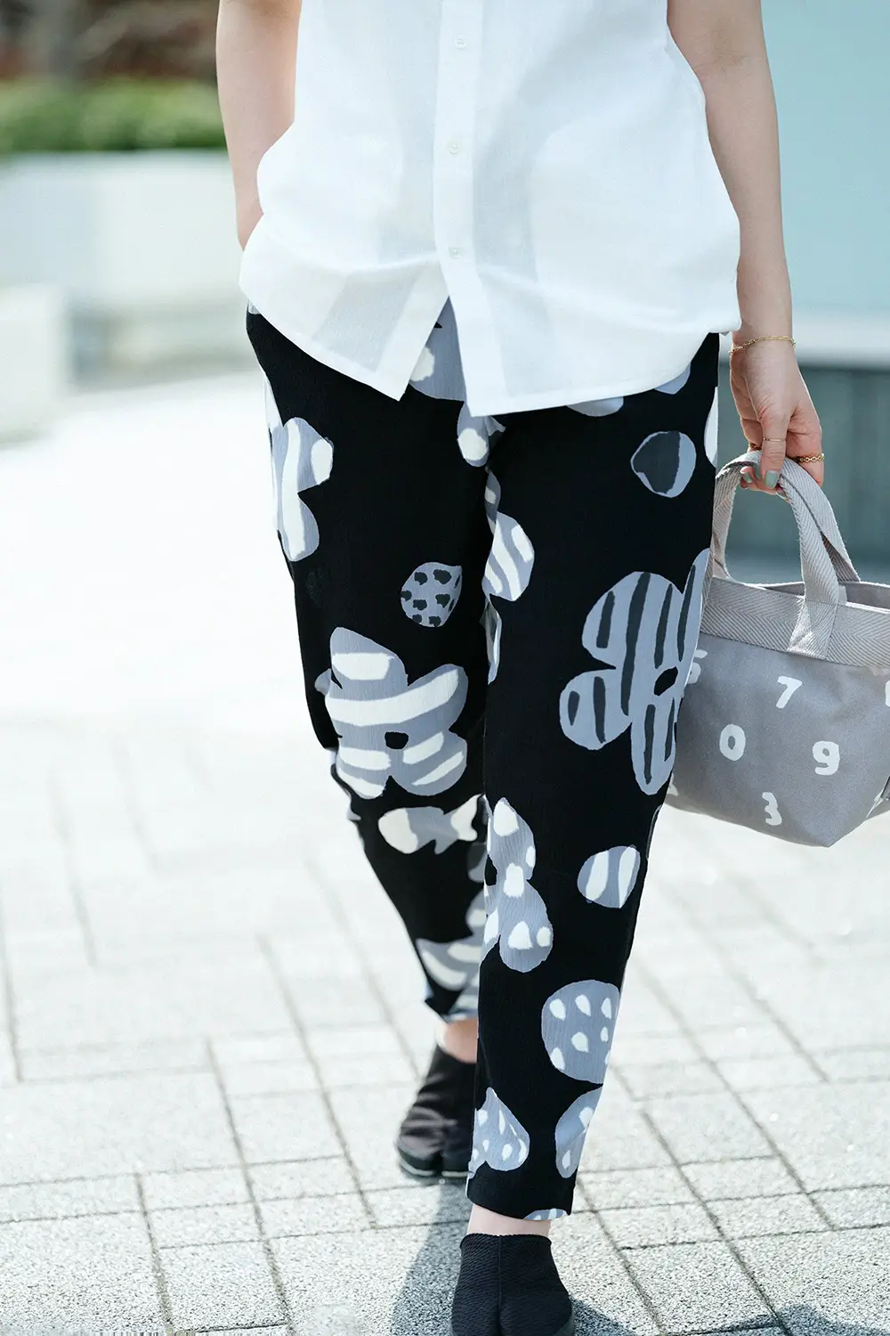 SOU・SOUの和装にもスッとなじむ美しいシルエット。ウエストは快適なゴム&紐仕様の夏ボトムス。