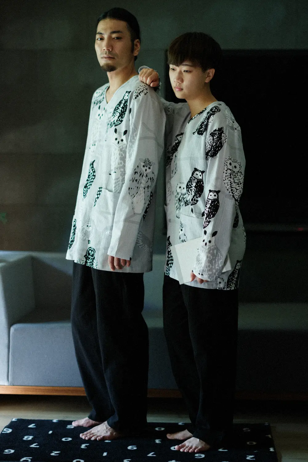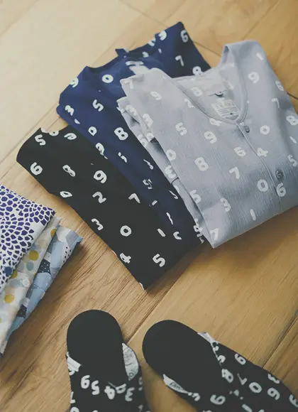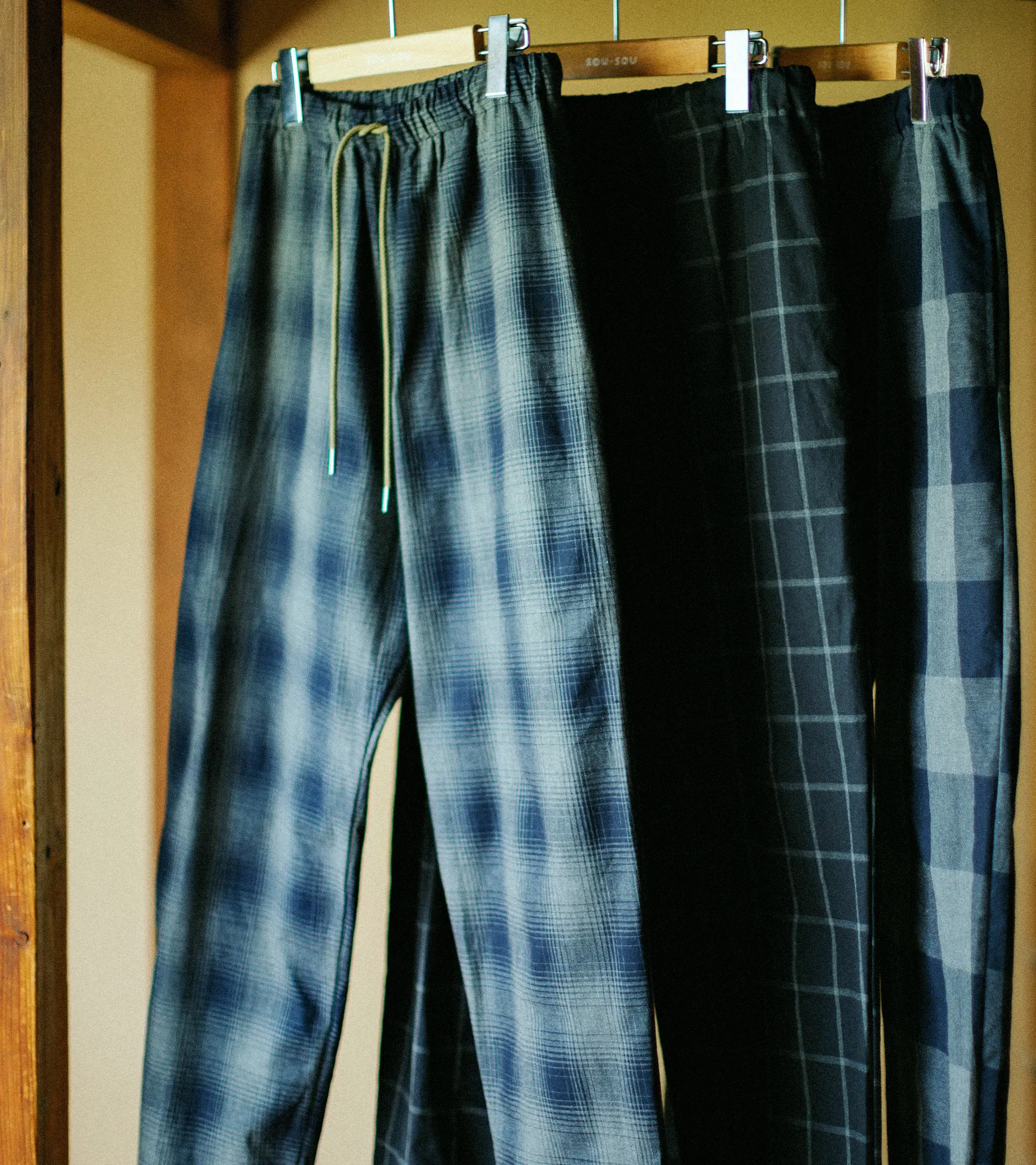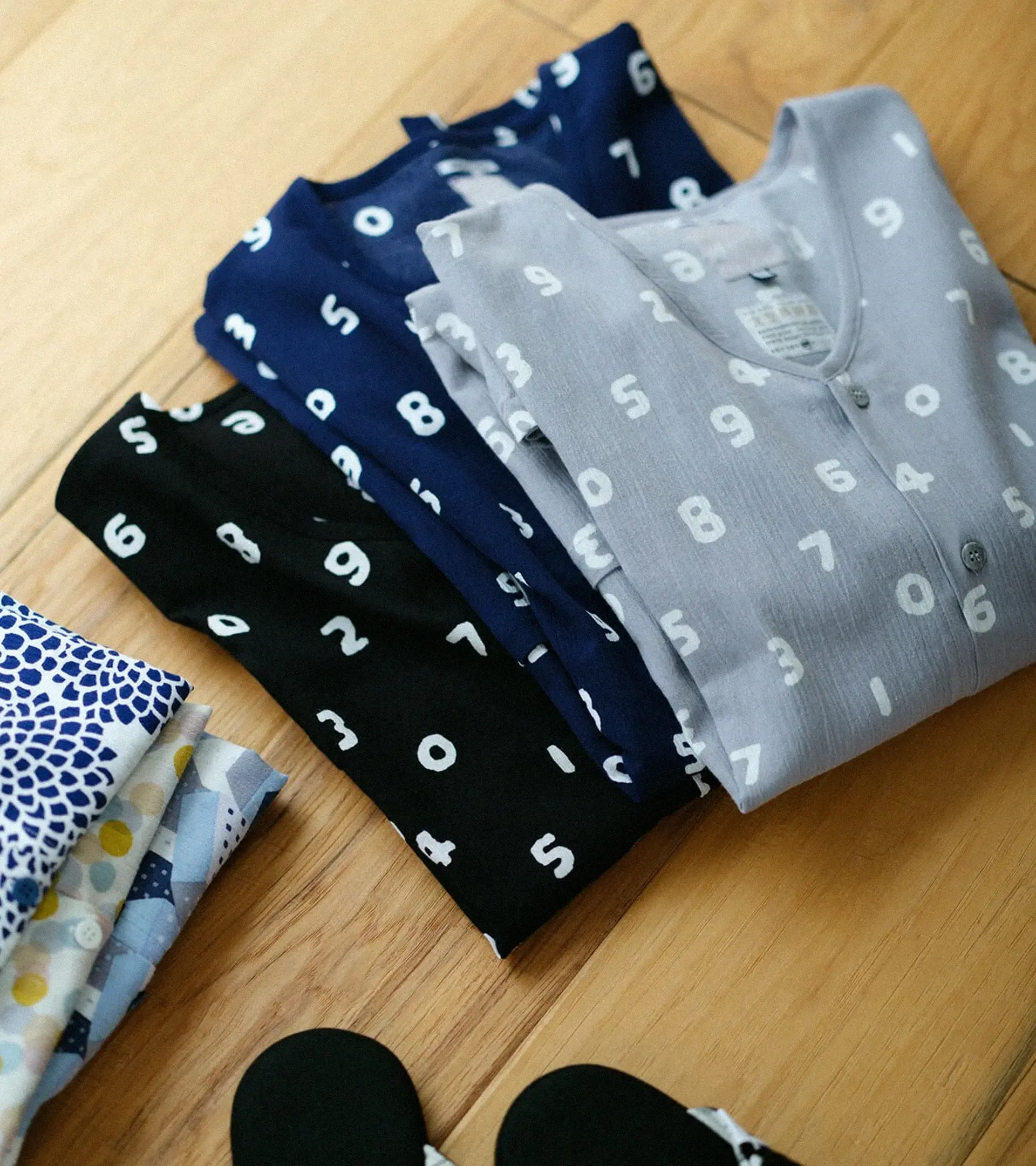 Yousou.のパジャマは肌に心地よい高島縮の綿素材。ほっと一息つけるおうち時間をお過ごしくださいませ。