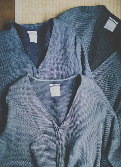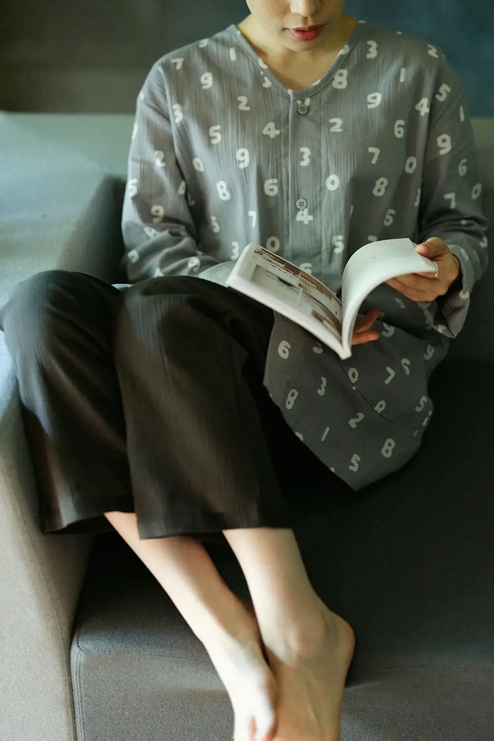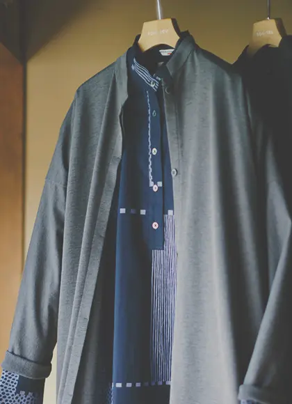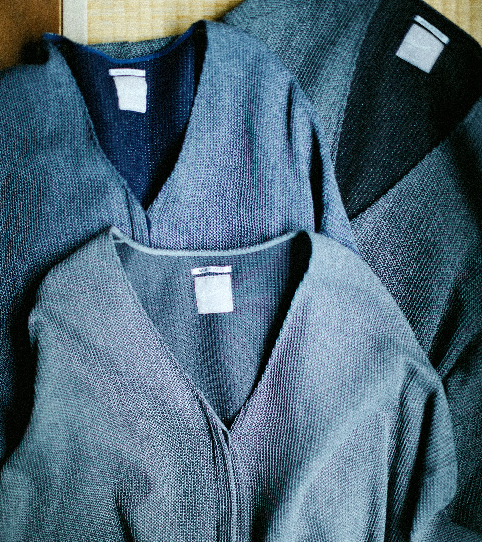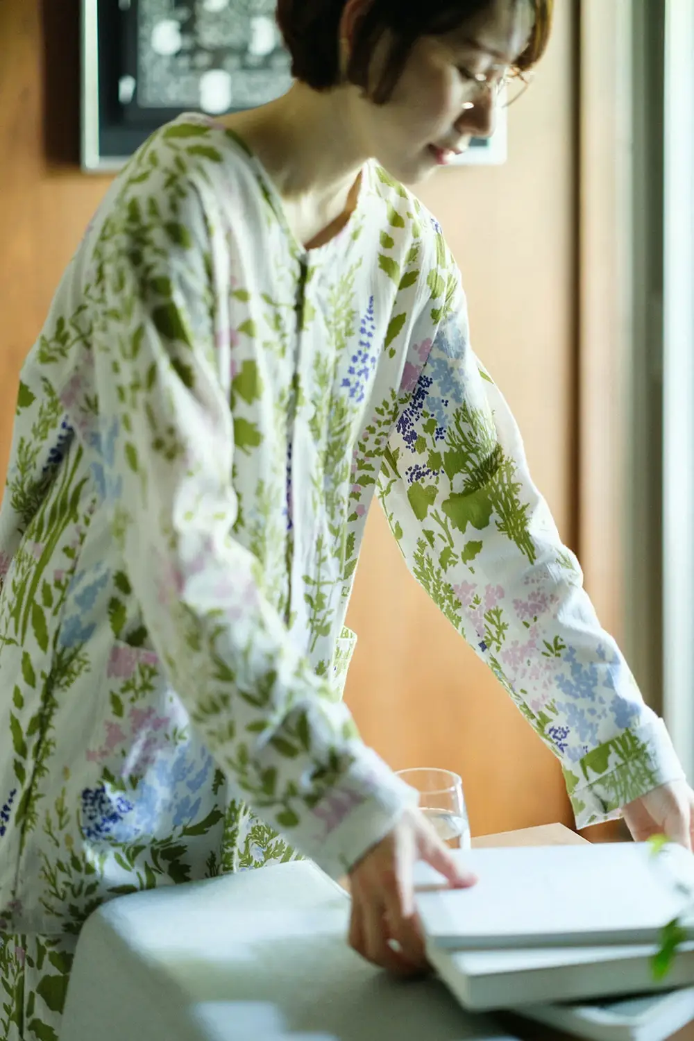 Yousou.のパジャマは肌に心地よい高島縮の綿素材。ほっと一息つけるおうち時間をお過ごしくださいませ。