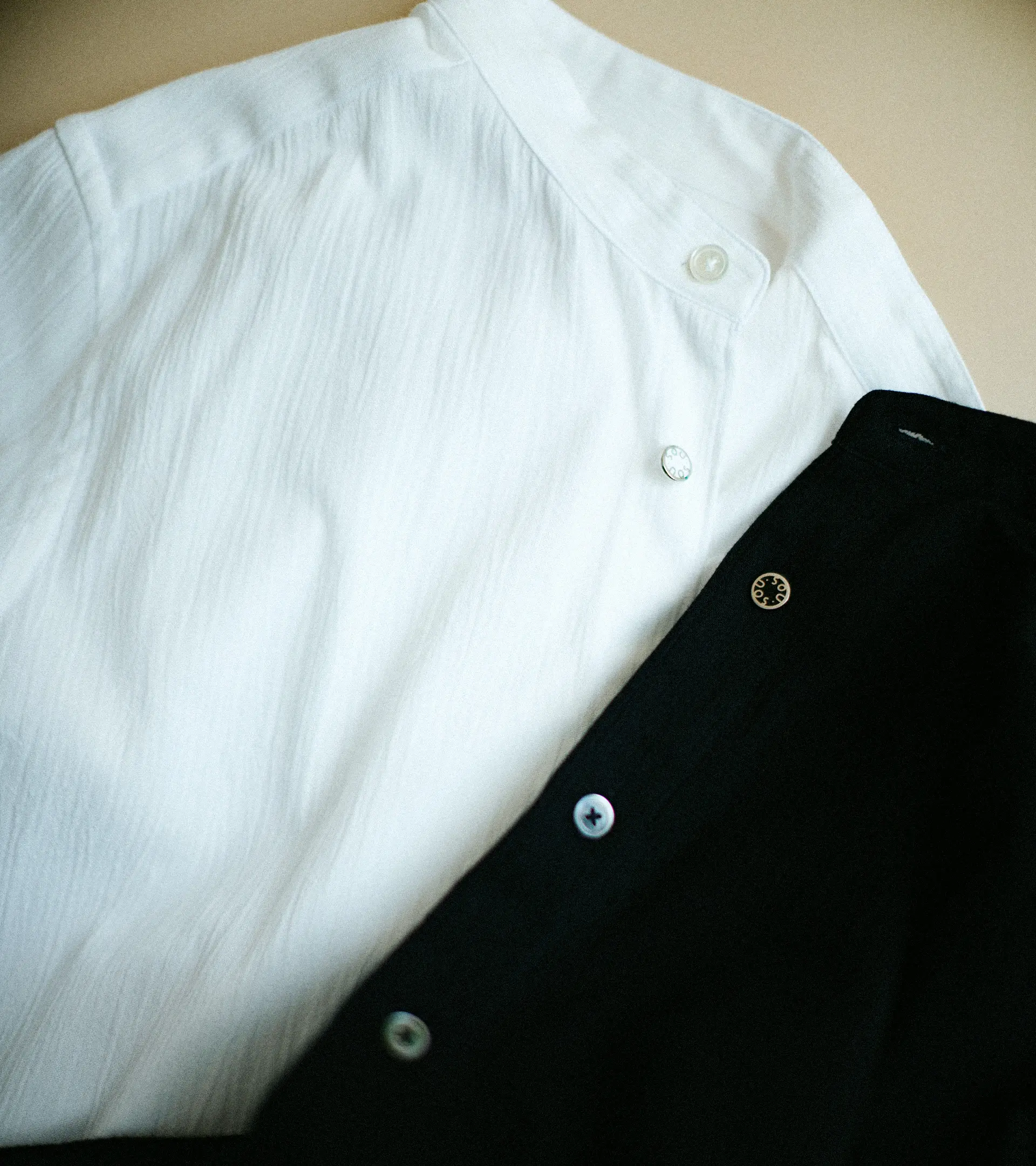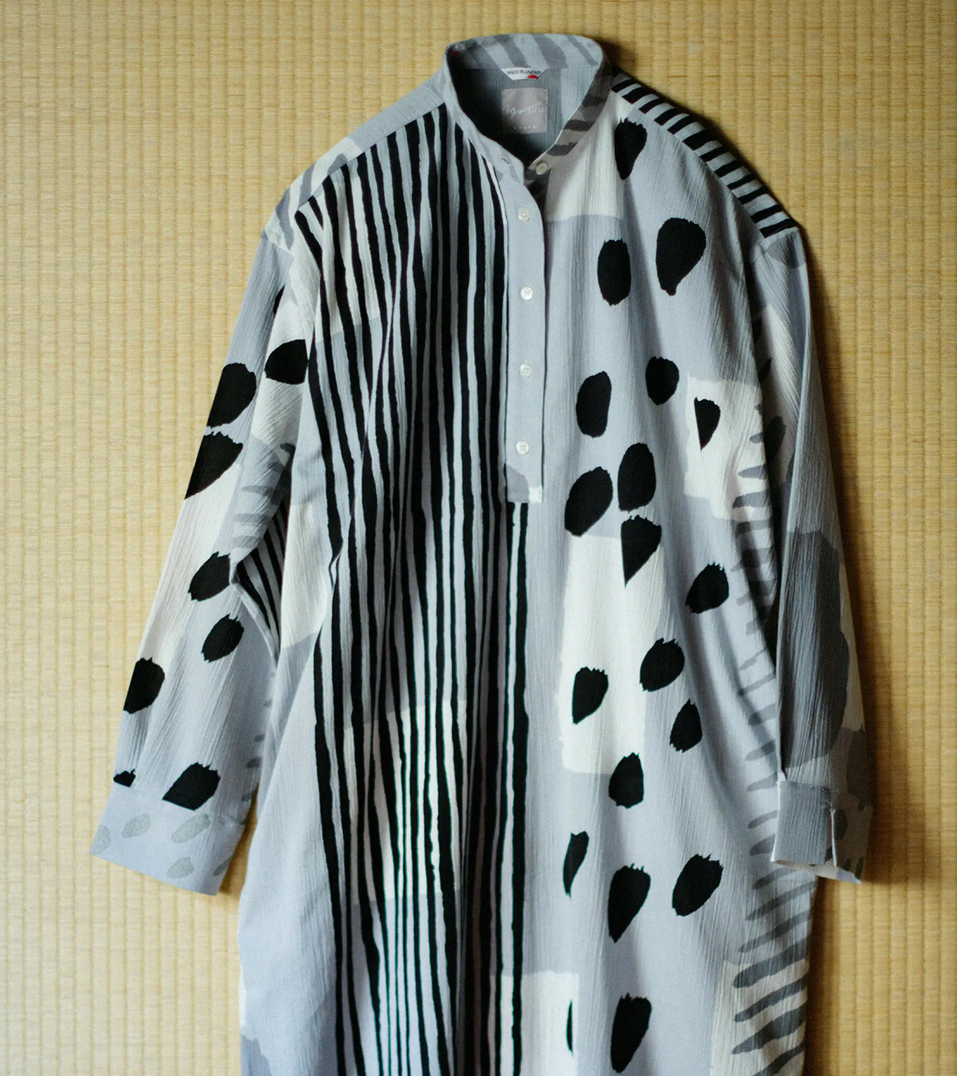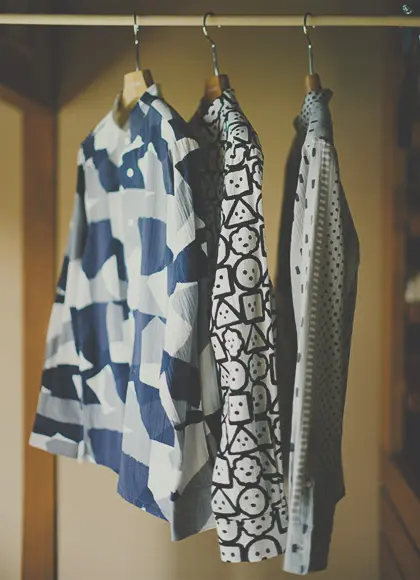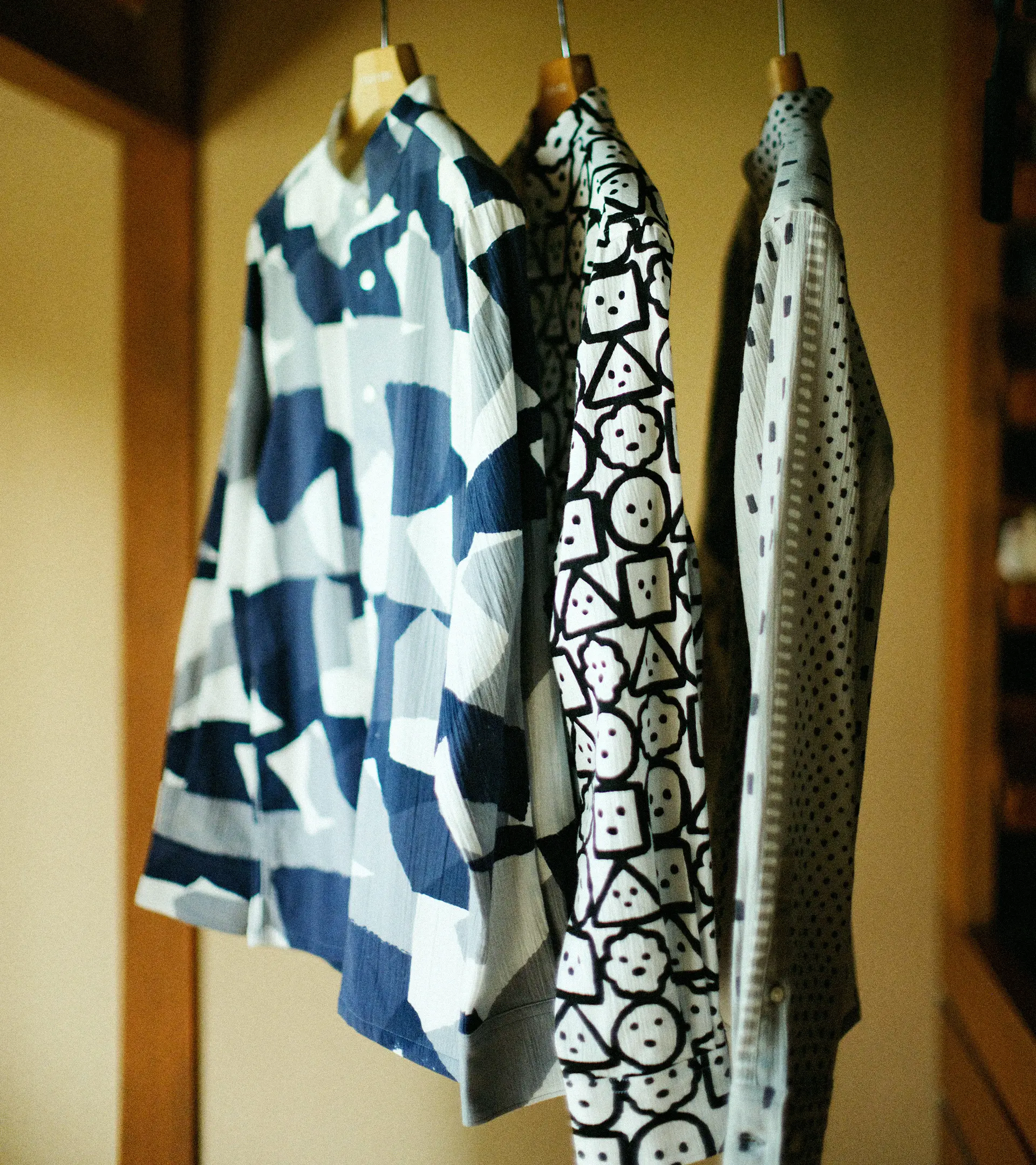 1枚でサマになる、京型友禅で染色されたテキスタイルの高島縮シャツ。お気に入りの1枚がきっと見つかる。
