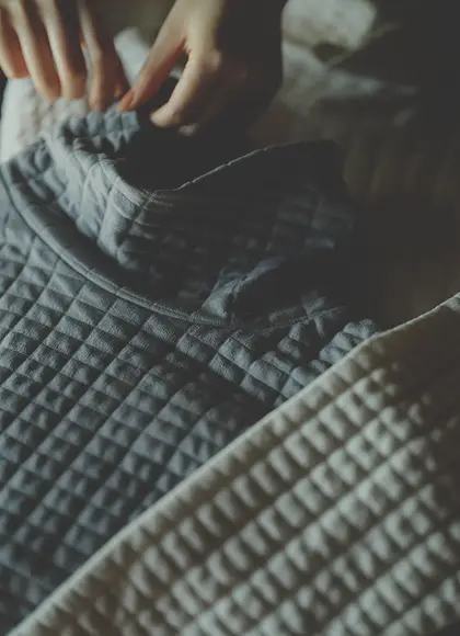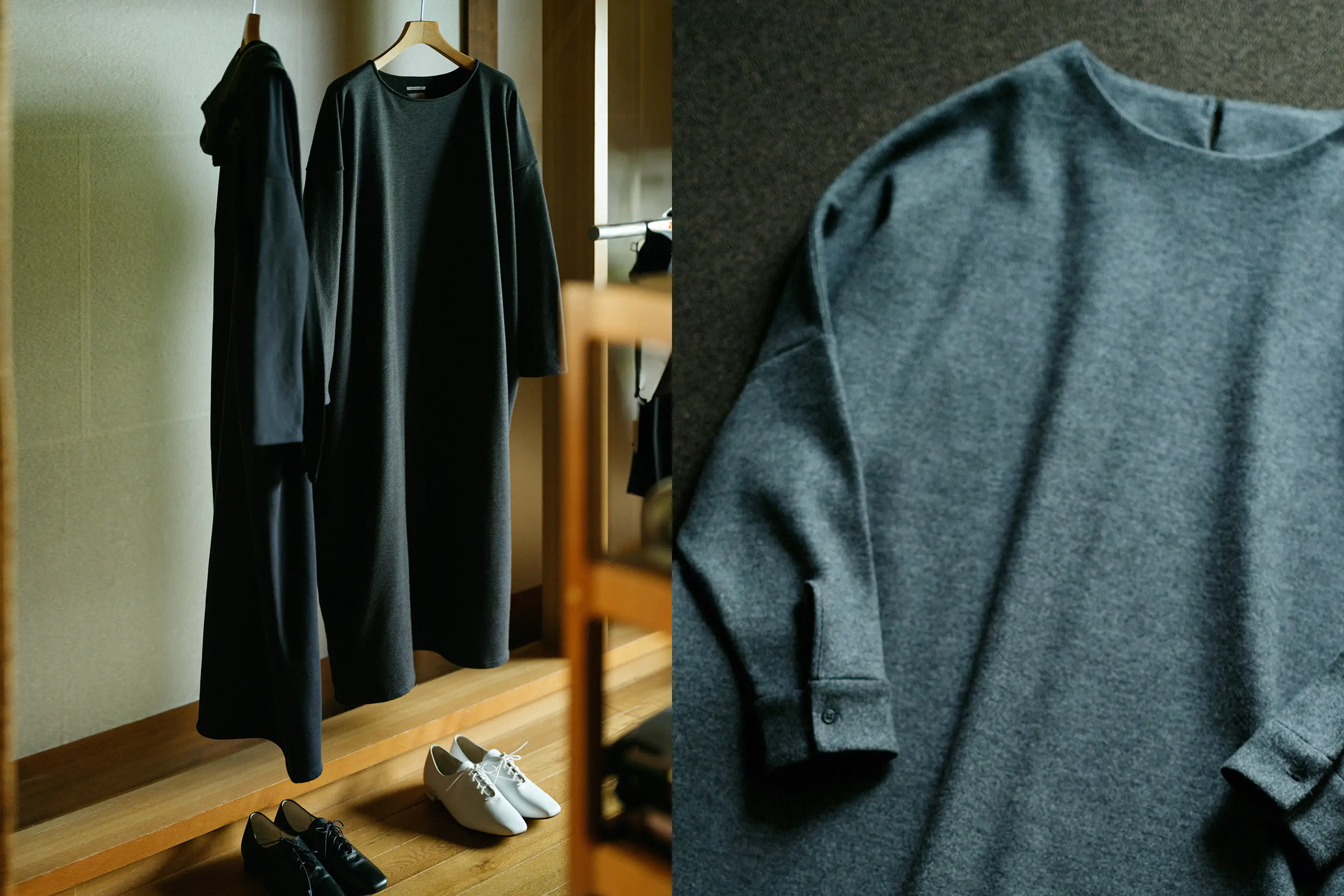 ワンピースは吸湿発熱性のある機能素材や着心地のよいスムース素材を選びました。ハウンドトゥースのチュニックはクラシカルな印象に。
